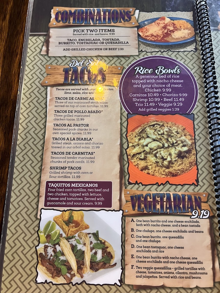 Welcome to Del Sol Mexican Restaurant, a vibrant gem located in Dillon, SC, offering a delightful twist on traditional Mexican cuisine. The menu features an enticing selection of tacos that cater to all palates. Signature dishes like Tacos Al Pastor and Tacos De Pollo Asado showcase a perfect blend of flavors, highlighting marinated meats paired with fresh garnishes such as onions, cilantro, and lime, all served alongside rice and beans.